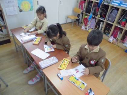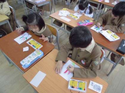 自分の手形を、きれいに切り取り、カラフルなうろこに仕上がりました。