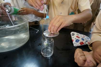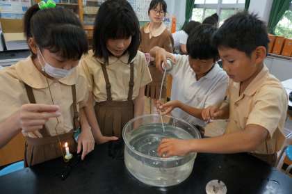 理科の学習では,4月に引き続き「ものが燃えるとき」の学習を行っています。