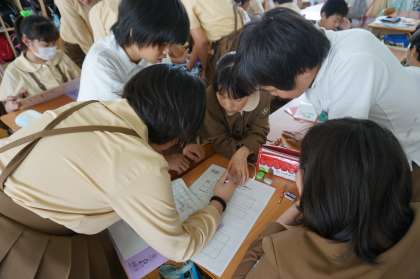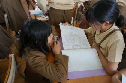 それぞれの登校班に分かれて,どのルートで回るのか,どんな清掃用具が必要かなどを話し合いました。