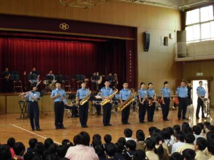 大阪府警察音楽隊による音楽鑑賞と此花警察から交通安全指導がありました。