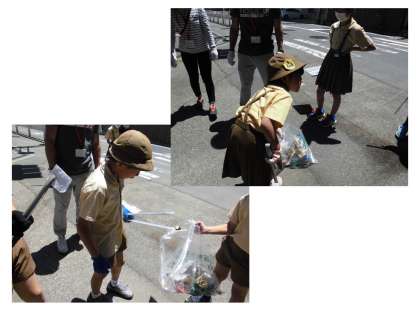 日差しの強い中、子どもたちは自分たちの校区をより美しくするために一生懸命、ごみを拾いました。