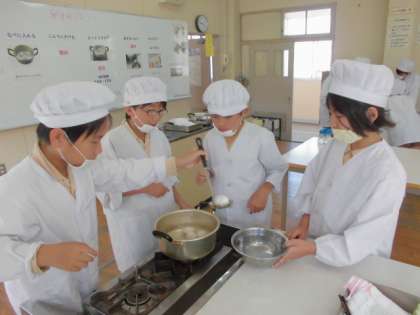 お湯が沸いたら弱火にし、お湯に気をつけながら菜箸でグルグルかきまぜると…。