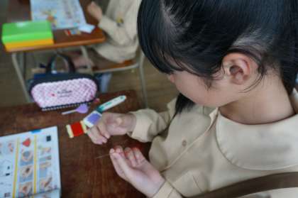 初めはうまくできなかった玉結びも、何回か練習するうちにだんだんコツが掴めてきました。