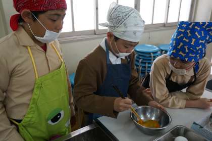 「卵を割るとき,ちょっときんちょうしたけど,うまく割れてよかったです。」