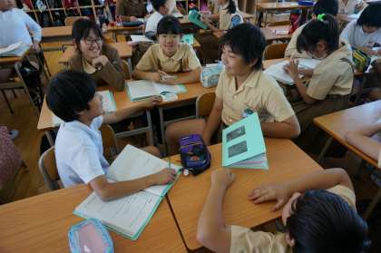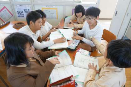 修学旅行に向けて,活動班ごとに集まってめあてを決めたり計画を立てたりしました。