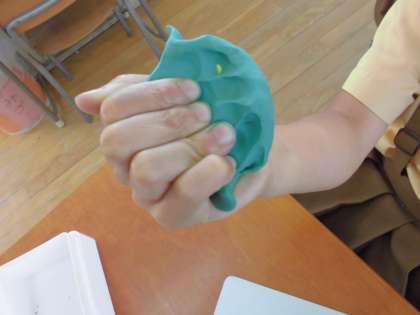 「きのこに見えてきた。」「枝豆のさやみたい。」「かめの親子みたい。」と色々なものに見立てて活動を楽しみました。
