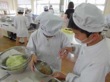 5年 調理実習(ゆで野菜サラダ)6月16日