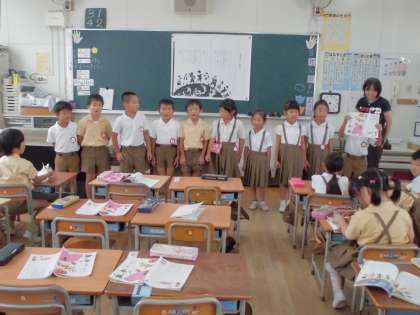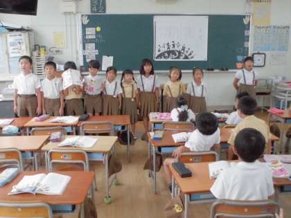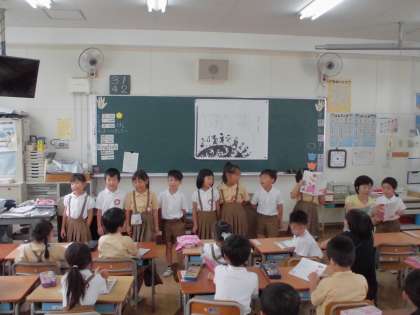 学習係の見本の後、音読で一生懸命覚えた詩を前で発表しました。