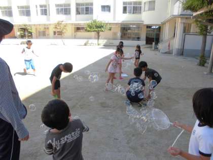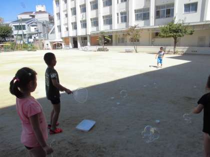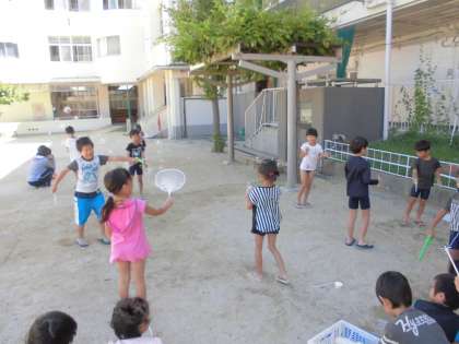 また、うちわやハンガーでのシャボン玉は、とても盛り上がりました。