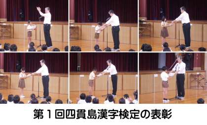夏休み明けに、第1回四貫島漢字検定を実施したところ、多くの児童が満点賞を獲得しました。これを弾みとして今後もがんばってほしいです。