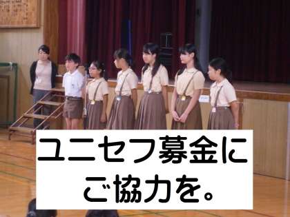 5日(火)より3日間、朝の正門前でユニセフ募金を実施します。ご協力をおねがします。