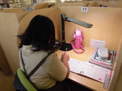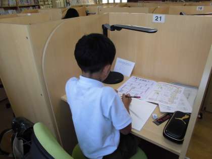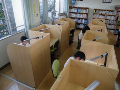 この5つをしっかり守り, 図書室にある一人机で,がんばっています。