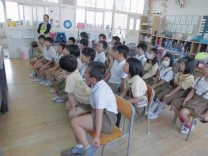クローバーさんによる朝の読み聞かせがありました。子どもたちは朝から「何のお話かな。」とウキウキソワソワして楽しみにしていました。