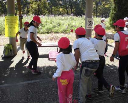 たくさんのポイントを低学年を連れて歩く高学年の児童は大変だったと思いますが,1年生の手を引きながら,頑張っていました。