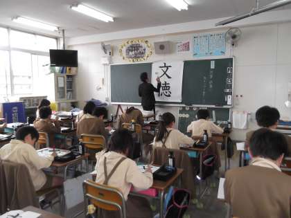 6年生は、「文徳」を書きました。「文徳」とは「学ぶことによって人格をつくる」という意味です。特に気持ちを込めて丁寧に書いた3人は、四貫島小学校PTA広報だよりの題字を飾ります。