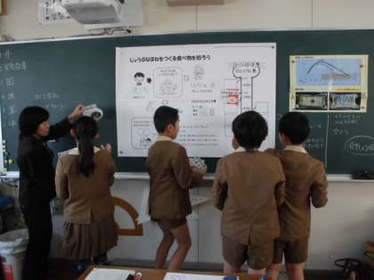 西九条小学校の栄養教諭にきていただき、「じょうぶなほねをつくる食べ物を知ろう」の学習をしました。