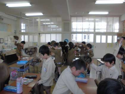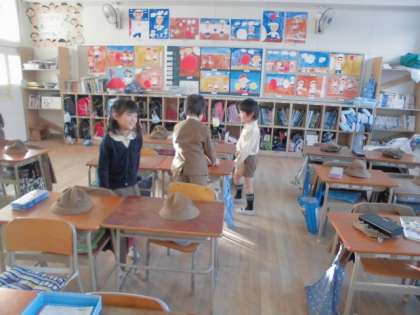 また宝探しでは、国語科の「あそびのやくそくを話し合おう」で学習した話し合いのきまりを守って、ルール作りをしました。みんなでルールを決めたので、より楽しい宝探しになりました。