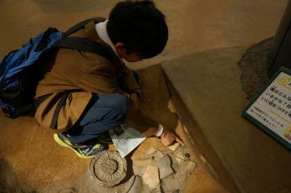 8階「歴史を掘るフロア」では,実物を見て触れる考古学体験をしました。