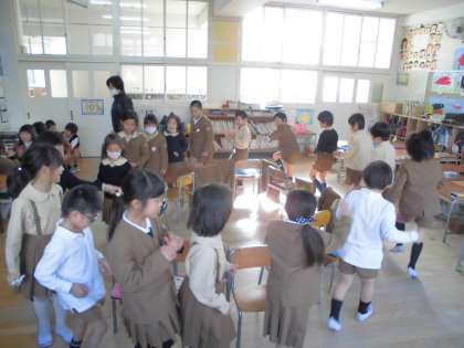 今日は、イス取りゲームとフルーツバスケットをしました。