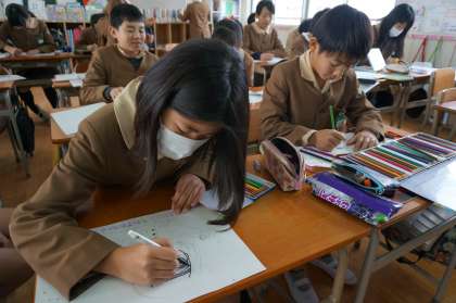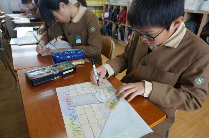 毎月の生活目標にもなっている「学校のきまり」の中から,それぞれが一つを選び,自分なりにデザインしました。