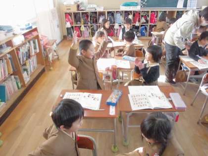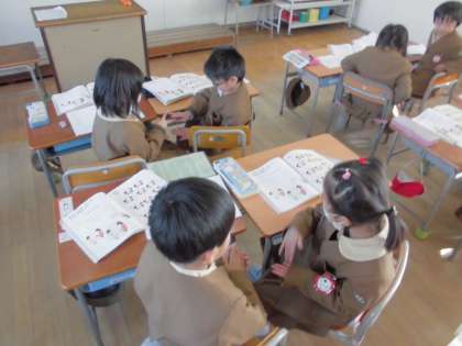 音楽の時間に、わらべ歌をしました。