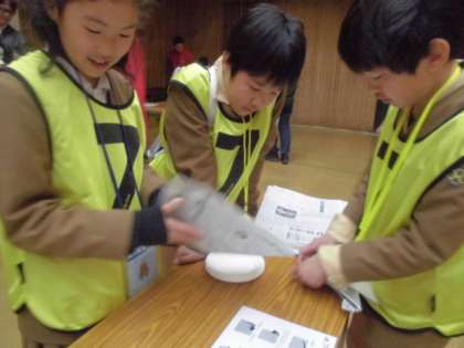 子どもたちはラジオの使い方や、電話の使い方、簡易トイレの作り方などを体験しています。