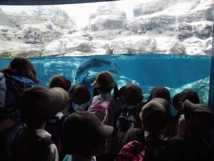 大きな水槽や大きな魚、たくさんの生き物に見とれていました。タッチプールでは、エイやサメにさわりました。