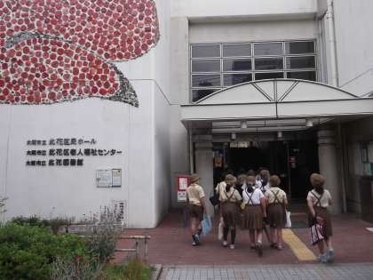 四貫島地区をまわりながら、此花図書館へ行きました。図書館の利用方法や本や利用者の数などいろいろなことを学びました。
