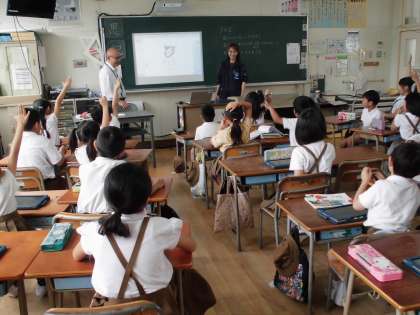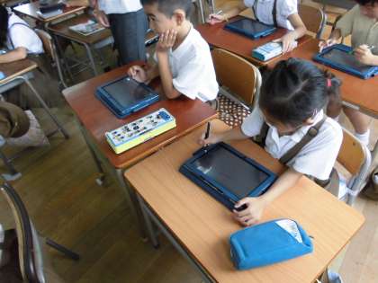 生活科の授業でタブレットを使用しました。発表ノートを使って、絵を描いたり、文字を書いたりしました。最後に、お題を出して、絵を描いて、そのお題を当てる、クイズをしました。とても盛り上がり、楽しい授業になりました。
