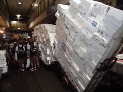 果物売り場、水産売場、野菜売場を見学しました。甲子園球場4つ半分の日本一広い市場なので歩くのも大変でしたが、いろいろなお店や食べ物が並んでいて、子どもたちは興味深そうに見学していました。「おはようございます!」と明るく元気よくあいさつすることもできました。