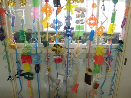 たくさんつなげて、かざりができました。