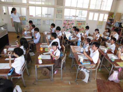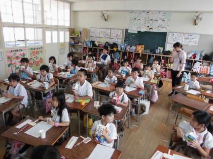 歯科衛生士さんに来ていただき、歯磨き指導をしてもらいました。歯に薬を塗って、歯垢の部分が赤く染まると、みんな驚いていました。そのあと自分でしっかり磨くことができました。歯科衛生士さんに、話を聞く態度も褒めてもらいました。これからも自分の歯を大切に、きれいに磨いてほしいと思います。