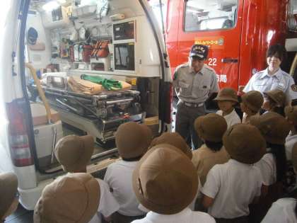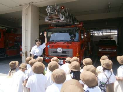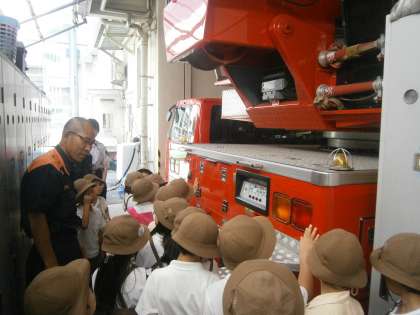 大阪市の防災の話を聞いた後は、実際に消防車や