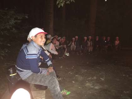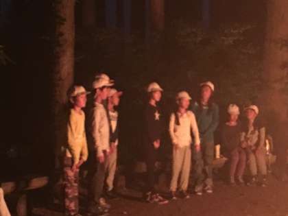 火の神から「友情」「勇気」「平和」「思いやり」の4つの火をもらい、点火してキャンプファイヤーがはじまりました。火の熱気に負けないくらいみんなで盛り上がって楽しい時間を過ごしました。
