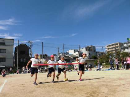 各学年の団体演技をみていると、まさしくスローガンのとおり絆が深まりあっていることを感じさせ、競走や競技をみても、限界にいどむ一生懸命な姿が印象的でした。