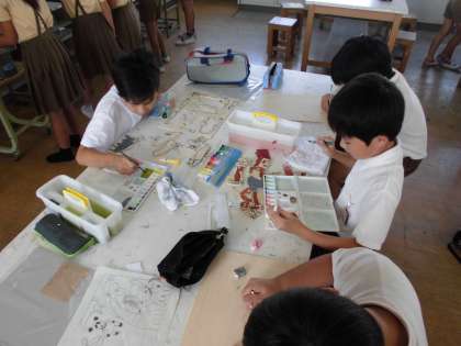 運動会が終わって秋さわやかな風が教室に吹き抜けています。教室で授業をしていると小鳥が迷い込んできました。突然のお客さんの訪問に子どもたちも驚いていました。小鳥は少し休んで飛び立っていきました☆子ども達は作品展に向けて作品を仕上げています。電動のこぎりに悪戦苦闘しています!怪我しないようにがんばります!