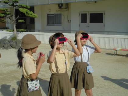 太陽を直接見ると危ないので、きちんとしゃ光板の使い方を守って見ることができました。