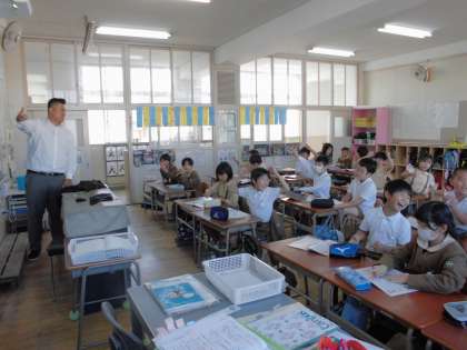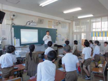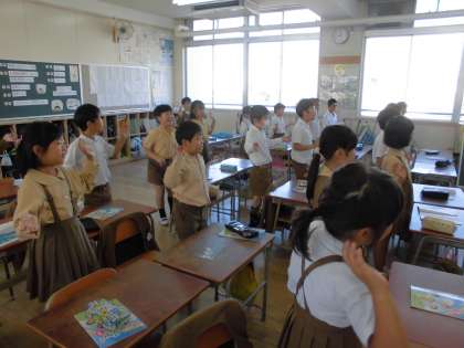 今日の一時間目は、アズリー先生による外国語活動の学習がありました。英語の歌を歌ったり、いろいろな外国語でじゃんけんをしたりしました。楽しい一日のスタートを切ることができました。