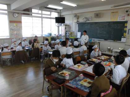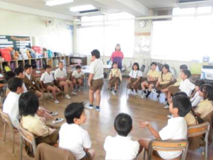 給食と遊びの交流をしました。5年生は3年生としました。5年生が配膳と片づけをします。先日の全校遠足を話題に楽しく食べていました。昼休みには、一緒になって遊びました。フルーツバスケットとリーダーゲームをしました。