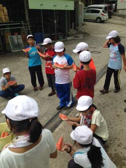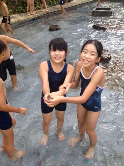 カレーを食べてからデザートのスイカを食べました。その次は魚つかみ!!素早い魚をどうにか捕まえることができたようです。そしてお待ちかねのウォータースライダー★子どもたちの楽しそうな声が聞こえてきそうですね♪魚もおいしかったかな?今日の夜はナイトハイク、星空いっぱい見れますように(^O^)