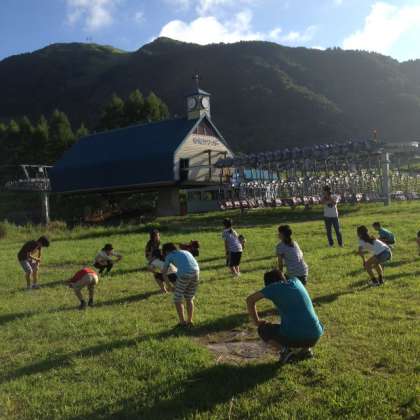 林間最終日がスタートしました!写真は昨日の夕ご飯の鴨鍋と今日の朝の体操の様子です。今日はカートンドックとアイスクリーム作り。最後まで楽しんできてね♪