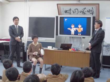 5時間目に、日本弁理士会近畿支部の方による、「知的財産特別授業」がありました。知的財産とは、発明、考案、著作物その他の人間の創造的活動により、生み出されるもの、および商標などのことをいいます。