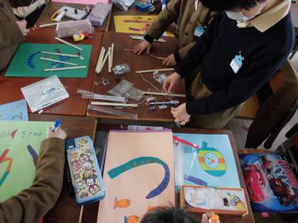 今日は、1年生と2年生で幼小交流会の準備をしました。いろいろなお店の準備をグループで協力して行っています。今度の開放デーでもお店係とお客さん係に分けて練習します。ぜひ来てください。