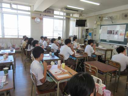 歯科衛生士の方と学校歯科医の方に来ていただいて、歯磨き指導を実施しました。
