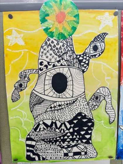 白と黒の繰り返し模様を工夫して描く中で、自分なりの表現を楽しむ姿が見られました。