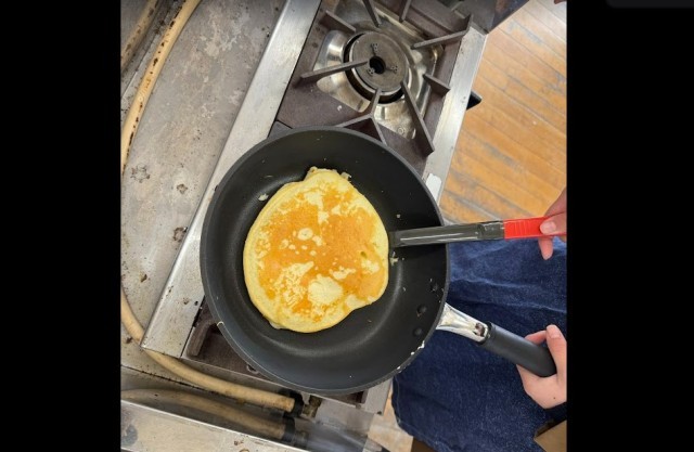 最後の調査実習では、米粉のパンケーキをつくりました。