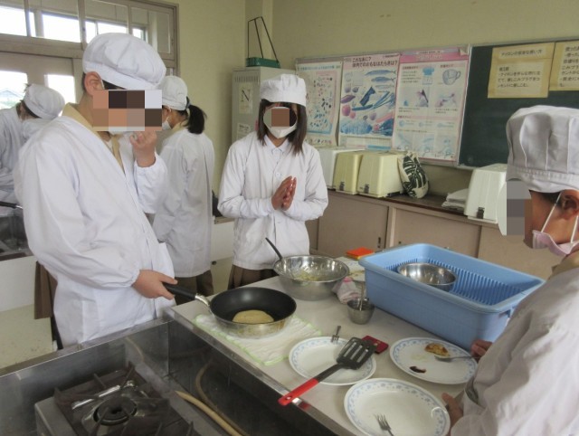 上手にまあるく焼けて盛り上がったり、思い思いのトッピングをしたりして、美味しく楽しく調理実習を行うことができました。