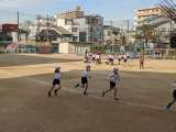 3年生は体育。体を温めるためにも、長く走ることは大切です。走る姿勢や息の仕方など...