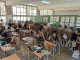 5年生は社会。災害の発生状況のグラフを見ながら、自然災害について考えています。南...