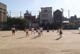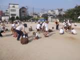 今日のグラウンド整備は,にがりまきです。「にがり」は,砂が飛び散ることを防ぐ役...